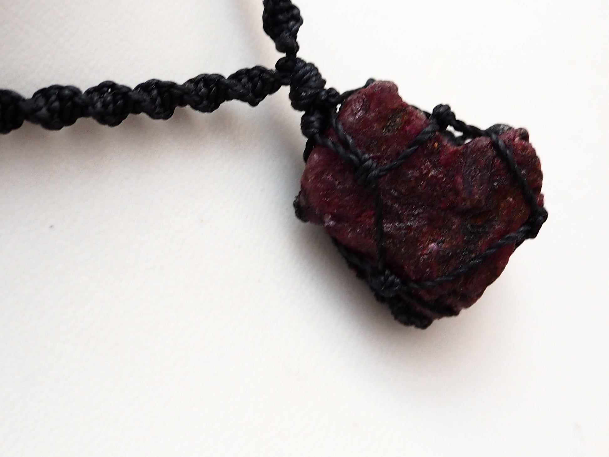 Presentamos una pieza de joyería verdaderamente única e irrepetible. Este collar de macramé es una celebración de la artesanía y la belleza natural del rubí en bruto. Diseñado para aquellos que buscan una joya con historia y carácter, es la única unidad disponible y no se volverá a repetir este modelo.