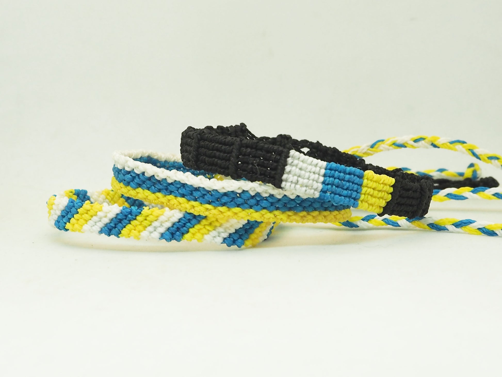 Pulseras artesanales confeccionadas en hilo encerado que lucen los colores de Canarias con precisión y detalle.